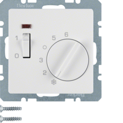 Termostat, pokojový se spínacím kontaktem, centrálním dílem, vypínačem a LED, Berker Q.x, bílá, sametová