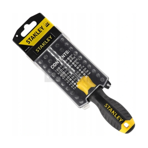 Sada bitů a magnetického držáku s rukojetí STANLEY STHT0-70885 Obsahuje šroubovací bity: Torx : T5, T6, T7, T8, T10, T15, T20, T25, T27, T30, T40 Inbus: 1,5mm, 2mm, 3mm, 4mm, 5mm, 2x 6mm, 7mm, 8mm Plochý : 3mm, 3.5mm, 4.5mm, 5.5mm, 6mm, 7mm Philips : PH0, 2x PH1, 2x PH2, PH3 ##VIDEO:https://www.youtube.com/embed/8O9y253NZPk##