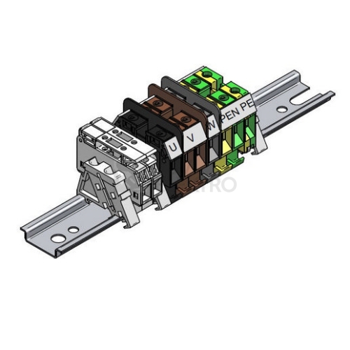 Průchozí, čtyřvodičová svorkovnice s dvěma držáky pojistky RSP 4. Složení svorkovnice: 6 x RSA 10 A 1 x RSA PE 10 A Rozměry: A [mm] 55 B [mm] 53 C [mm] 119 C1 [mm] 50 L [mm] 235 • Materiál izolantu polyamid PA 6, hořlavost V0 dle UL 94, bez halogenů • Nadstandardní povrchová úprava spojovacích i elektrovodných částí • Možnost připojení hliníkových i měděných vodičů • Vodivě spojené svorky PE s lištou DIN • Krytí IP 20 bez nutnosti používání příslušenství či krytů (*) • Oddělení fázových svorek středovými přepážkami • Svorky v sestavách svorkovnic jsou označeny popisem • Certifikace státní zkušebny a soulad s normami EU
