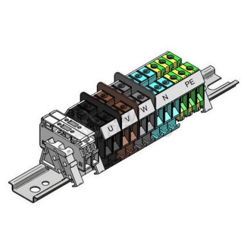 Odbočovací pětivodičová svorkovnice s dvěma držáky pojistky RSP 4. Složení svorkovnice: 9 x RSA 10 A 3 x RSA PE 10 A Rozměry: A [mm] 55 B [mm] 53 C [mm] 169 C1 [mm] 40 L [mm] 250 • Materiál izolantu polyamid PA 6, hořlavost V0 dle UL 94, bez halogenů • Nadstandardní povrchová úprava spojovacích i elektrovodných částí • Možnost připojení hliníkových i měděných vodičů • Vodivě spojené svorky PE s lištou DIN • Krytí IP 20 bez nutnosti používání příslušenství či krytů (*) • Oddělení fázových svorek středovými přepážkami • Svorky v sestavách svorkovnic jsou označeny popisem • Certifikace státní zkušebny a soulad s normami EU