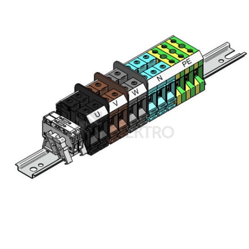 Odbočovací pětivodičová svorkovnice s dvěma držáky pojistky RSP 4. Složení svorkovnice: 9 x RSA 35 A 3 x RSA PE 35 A Rozměry: A [mm] 65 B [mm] 70 C [mm] 249 C1 [mm] 50 L [mm] 380 • Materiál izolantu polyamid PA 6, hořlavost V0 dle UL 94, bez halogenů • Nadstandardní povrchová úprava spojovacích i elektrovodných částí • Možnost připojení hliníkových i měděných vodičů • Vodivě spojené svorky PE s lištou DIN • Krytí IP 20 bez nutnosti používání příslušenství či krytů (*) • Oddělení fázových svorek středovými přepážkami • Svorky v sestavách svorkovnic jsou označeny popisem • Certifikace státní zkušebny a soulad s normami EU (*) Typy sestavené ze svornic RSA 35A (SS 6.35 a SS 9.35) je nutné pro docílení krytí IP 20 doplnit příslušenstvím: boční krytkou pro RSA 35A, obj.číslo G 420066 – touto ale pouze v případě, že je průřez připojeného vodiče 10 mm2 a nižší, nebo je-li otvor svorky neosazen vodičem. Pokud svorkovnice sestavené ze svorek RSA 35A nesplňujívýše uvedené, je jejich krytí IP10. Svorkovnice sestavené z RSA 35A nejsou standardnědodávány s příslušenstvím pro zvýšení krytí, toto musí být přiobjednáno.