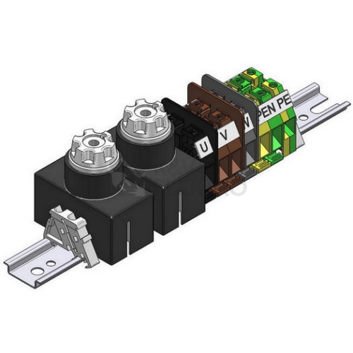 Průchozí, čtyřvodičová svorkovnice s dvěma držáky pojistky E27. Složení svorkovnice: 6 x RSA 16 A 1 x RSA PE 16 A Rozměry: A [mm] 75 B [mm] 83 C [mm] 206 C1 [mm] 40 L [mm] 300 • Materiál izolantu polyamid PA 6, hořlavost V0 dle UL 94, bez halogenů • Nadstandardní povrchová úprava spojovacích i elektrovodných částí • Možnost připojení hliníkových i měděných vodičů • Vodivě spojené svorky PE s lištou DIN • Krytí IP 20 bez nutnosti používání příslušenství či krytů (*) • Oddělení fázových svorek středovými přepážkami • Svorky v sestavách svorkovnic jsou označeny popisem • Certifikace státní zkušebny a soulad s normami EU
