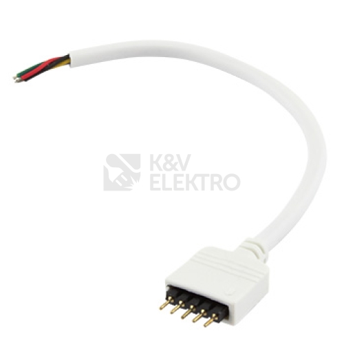 Napájecí kabel pro RGBW s konektorem RM 2,54 - 5p, 1x vidlice, 15cmTechnické parametry: Pracovní napětí: max. 24 V DC Proudové zatíž ení: max. 5 A Délka: 15 cm