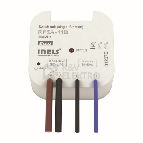 Spínací prvek s 1 výstupním kanálem slouží k ovládání spotřebičů, zásuvek, světel a snadno jej lze integrovat také k ovládání garážových vrat nebo bran. POPIS Možnost volby dvou typů provedení: RFSA-11B: jednofunkční provedení (sepnout/vypnout) RFSA-61B: multifunkční provedení (časové funkce zpožděného rozběhu nebo návratu s rozsahem 2s – 60 min). Spínací prvek může být ovládán až 32 kanály (1 kanál představuje jedno tlačítko na ovladači). Prvky je možné kombinovat s Ovladači nebo Systémovými prvky iNELS RF Control. TECHNICKÉ PARAMETRY Napájecí napětí AC 230 V nebo AC 120 V nebo AC/DC 12 – 24 V. Dosah 200m (volné prostranství), v případě nedostatečného signálu mezi ovladačem a prvkem použijte opakovač signálu RFRP-20. Výstupní kontakt: 1x spínací 16 A (AgSnO2, 4000 VA/AC1). Komunikační frekvence (868MHz, 866MHz, 916MHz, 922MHz) s obousměrným protokolem RFIO nebo RFIO2. RFIO2 je inovovaný bezdrátový komunikační protokol systému iNELS RF Control, který přináší větší stabilitu a eliminuje kolizi signálů mezi jednotlivými prvky. V provedení BOX, instalace do instalační krabice, podhledu nebo krytu ovládaného spotřebiče.