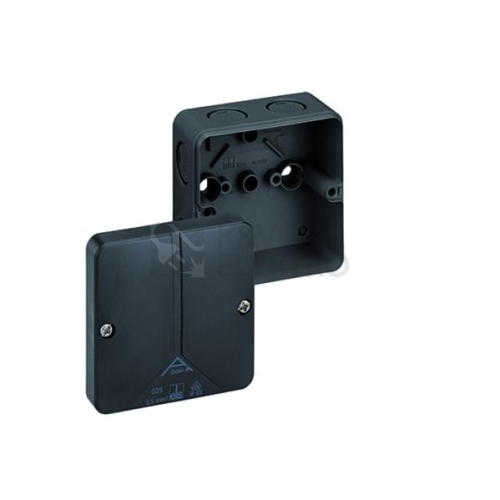 Spojovací krabice, se stupněm krytí IP66, Jmenovitý průřez 2,5mm², Ui=690V AC, Certifikováno podle VDE (DIN EN 60670-1/-22 (VDE 0606-1/-22)), DLG (odolnost vůči čpavku), DNV (Třída: Lodě & offshore zařízení), Vyrážecí membrány, M20, (1 ze zadu, 7 z boku), Vnitřní místa pro připevnění, pro instalace v průmyslovém prostředí a chráněném venkovním prostředí, černá, bez svorek, Rozměry: 82 x 82 x 52mm, Přiložené příslušenství: 4 Dvojitá membránová vývodka IP66 M20 Rozsah těsnění 7-12mm