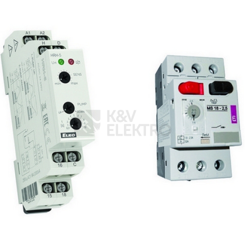 Komplet obsahující hladinový spínač HRH-5 a motorový spouštěč MS18, se používá pro hlídání hladin ve studnách, nádržích. POPIS Komplety jsou ve dvou variantách: HRH-MS-1A - hladinový spínač HRH-5 s motorovým spouštěčem MS18 0.63 – 1 A. HRH-MS-1.6A - hladinový spínač HRH-5 s motorovým spouštěčem MS18 1 – 1.6 A. Vyznačují se jednoduchým způsobem instalace bez složitého propojování a zapojování – vše je připraveno k montáži. Možnost nastavení odčerpávání, dočerpávání nebo zpoždění spínání (např. při kolísání hladiny). Nastavitelné zpoždění (0,5-10s). TECHNICKÉ PARAMETRY Napájecí napětí AC/DC 230 V. Nastavení citlivosti: 5-100 k?. Umístěno v rozvaděči s krytím IP 65.