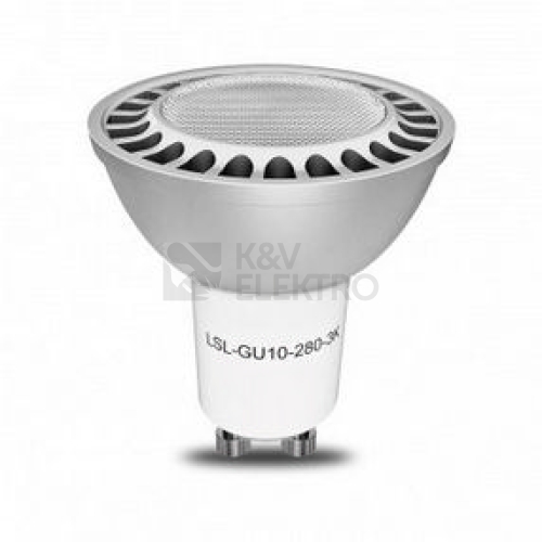 DOPRODEJ - LED spot - nahrazuje klasickou 35W halogenku, teplá bíláLED bodovka LSL-GU10-280-3K - technické parametry:Naše označení: LSL-GU10-280-3KNáhrada za klasickou žárovku [W]: 50Příkon [W]: 5Teplota světla [K]: 3000Patice: GU10Světelný tok [lm]: 280Napětí [V]: 220-240Frekvence [Hz]: 50/60Životnost [h]: 35000Stmívatelná: NeVelikost žárovky [l×d] [mm]: 56×50Index podání barev CRI: 85Proud [mA]: 37Svítivost [cd]: 600Účinek světelného zdroje: >0,5Úhel osvětlení [°]: 35Hmotnost [g]: 63