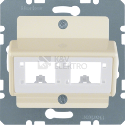 Centrální díl pro 2x RJ45 Reichle & De-Massari, Cat.5e a Cat.6 nebo optické moduly, 30° šikmý vývod, systém střed. dílů, krémová, lesk