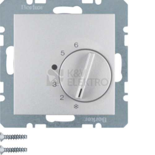 Termostat, pokojový s přepínačem a centrálním dílem, Berker S.1/B.x, alu, mat