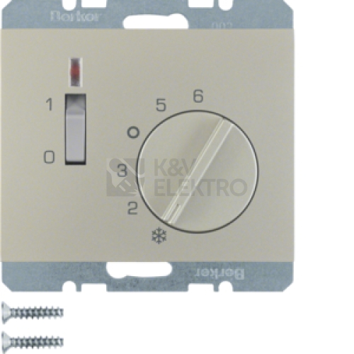 Termostat, pokojový se spínacím kontaktem, centrálním dílem, vypínačem a LED, Berker K.5, ušlecht. ocel, lak.
