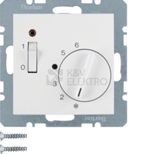 Termostat, pokojový se spínacím kontaktem, centrálním dílem, vypínačem a LED, Berker S.1/B.x, bílá, lesk