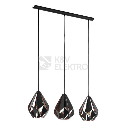 Závěsný lustr EGLO Carlton 1 49991 vyniká unikátním vzhledem i precizním zpracováním. Tento designový kousek se stane dominantou vaší ložnice, jídelny, či obývacího pokoje. Extravagantní svítidlo Carlton 1 vás ohromí svou barevnou kombinací i zajímavým designem. Závěsné svítidlo je vyrobeno z kvalitního kovu v černé matné barvě s vnitřními plochami v měděné barvě. Díky rafinovaným průřezům vykouzlí ve vašem interiéru jedinečnou hru světla a stínů. Vlastnosti lustru Carlton 1 43399 Závěsné svítidlo Carlton 1 má 3 objímky pro LED žárovky E27 s maximálním výkonem 3x 60W. Do tohoto svítidla vám doporučujeme pořídit některou z LED filament žárovek pro dokreslení atmosféry. Ochrana krytí tohoto svítidla je IP 20. Není tedy doporučeno do prostor se zvýšenou vlhkostí a prašností. Svítidlo je vyrobeno z oceli a váží 3,8 kg. Doporučujeme kombinovat s dalšími typy svítidel ze série Carlton. Další osvětlení EGLO Vybírejte z dalších svítidel EGLO a pořiďte si do nich stylové retro LED žárovky E27, nebo běžné LED žárovky E27. Koupit si můžete i nástěnná a stropní svítidla od dalších značek. V naší nabídce najdete také koupelnová světla, kuchyňské osvětlení, bodovky, downlighty či lustry. Podívejte se na kompletní nabídku LED osvětlení na našem e-shopu. O společnosti Eglo Rakouská firma EGLO, založená roku 1969, je jedním z předních evropských výrobců interiérových i exteriérových svítidel. Osvětlení EGLO je funkční, elegantní a kvalitní. Při výběru materiálu se budete nejčastěji rozhodovat mezi opálovým sklem, ocelí, textilem a dřevem. V naší nabídce najdete různé typy svítidel EGLO, ať už závěsné lustry EGLO, stolní lampičky, venkovní stropní svítidla či světla do koupelny EGLO. Oblíbené jsou řady EGLO Pandella, EGLO Optica či EGLO Fueva. Podívejte se na celý sortiment EGLO v naší nabídce.