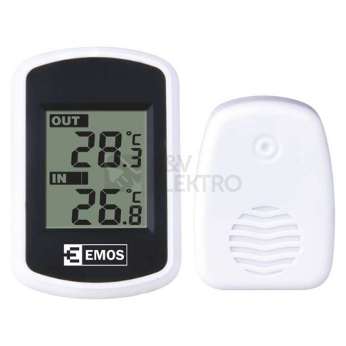 Měřte teplotu ve vaší domácnosti bezdrátovým teploměrem značky Emos, který umožňuje zobrazení vnitřní i venkovní teploty. Součástí balení je bezdrátové čidlo (433 MHz) s dosahem až 100 metrů ve volném prostoru, které můžete k digitálnímu teploměru připojit. Bezdrátový digitální teploměr Emos umožňuje měření vnitřní teploty v rozsahu 0 °C až +60 °C (µ 1°C) a venkovní teploty - 40 °C až + 60 °C (µ 1°C) s rozlišením 0,1°C. Teploměr i čidlo jsou napájeny 2 x 1,5 V AAA bateriemi, které nejsou součástí dodávky. Teploměr má rozměr 56 x 85 x 18 mm a váhu 40 g bez baterií, displej měří 34 x 39 mm. Rozměr čidla činí 49 x 68 x 20 mm a váha 26 g bez baterií. Podívejte se i na další měřicí přístroje v našem sortimentu. Kromě přístrojů pro měření teploty a klimatu vybírejte například z multimetrů, zkoušeček napětí, nebo klešťových měřičů. Nezapomeňte si pořídit kvalitní mikrotužkové baterie, které nejsou součástí balení. O společnosti Emos Česká společnost EMOS vznikla v roce 1991 v Přerově. Od té doby se z ní stala moderní obchodní firma, která dorostla až do podoby koncernu se čtyřmi zahraničními pobočkami. Na e-shopu E1.cz můžete zakoupit například součástky pro AV a TV techniku EMOS, měřicí přístroje, zásuvky a zástrčky, akumulátory či různé druhy kabelů. Podívejte se na kompletní sortiment EMOS, který nabízíme.