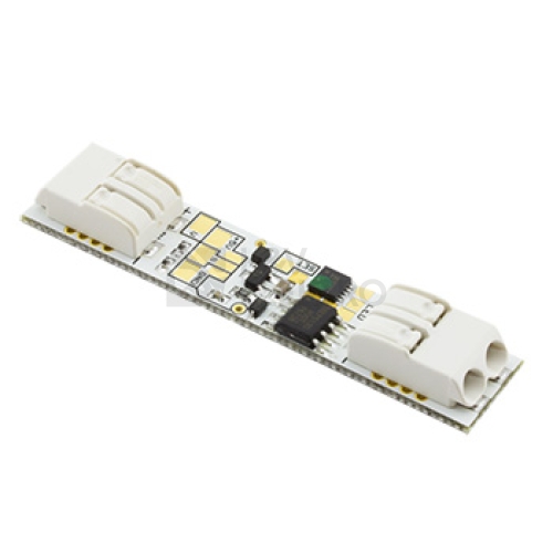Miniaturní stmívač pro LED pásky ovladatelný libovolným tlačítkem, potenciometrem či analogovým signálem 0-10 V . Modul má svorkovnice pro vstup napájení a výstup pro LED a pájecí plošky pro drátové vývody k ovládání. Díky miniaturnímu provedení, lze zabudovat přímo do Al profilu, či do instalační krabice.Technické parametry: Zatížitelnost (W): 108 Pro: jednobarevné LED pásky Počet barev: 1 Stmívání: ano Max. proud: 9 A Krytí: IP20 Pracovní teplota: - 5 °C až + 50 °C Napájecí napětí: 12 V DC Rozměry: 50 x 10 mm