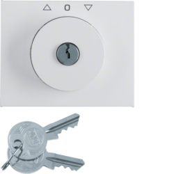 Centrální díl se zámkem pro žaluziový vypínač, vyjmutí klíče ve 3 poloh., Berker K.1, bílá, lesk