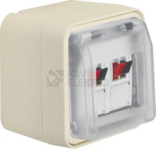 Zásuvka reproduktorová stereo, max. průřez vodičů 2,5mm2, komplet., IP 55, Berker W.1, bílá, mat