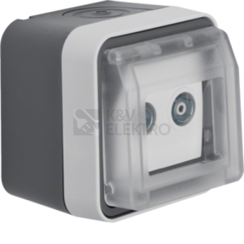 Zásuvka, antenní TV-R, průchozí, komplet., IP 55, Berker W.1, sv. šedá, mat