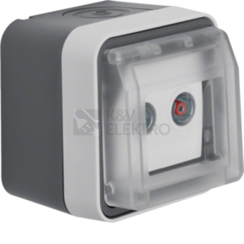 Zásuvka, antenní TV-R, koncová, komplet., IP 55, Berker W.1, sv. šedá, mat