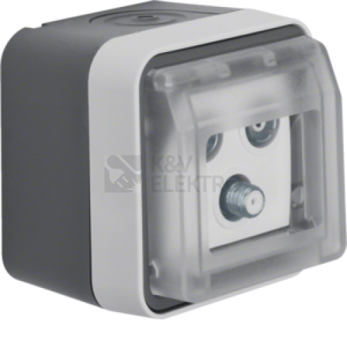 Zásuvka, antenní TV-R-SAT, komplet., IP 55, Berker W.1, sv. šedá, mat
