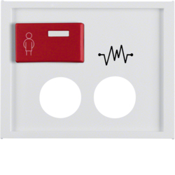 Centrální díl s červeným tlačítkem pro hovor v horní části a s místem pro 2 pomocné plug-in konektory, Berker K.1, bílá, lesk
