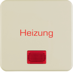 Kolébka, s červenou čočkou a nápisem "Heizung Notschalter", Není vhodné pro vytápění > 50 kW, wg Up IP44, bílá, lesk