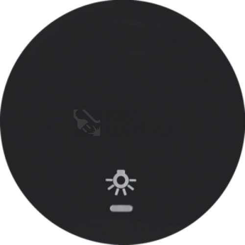 Kolébka s průhlednou čočkou a symblem světlo, Berker R.1/R.3, černá, lesk