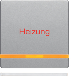 Kolébka s oranžovou čočkou a potiskem "Heizung", Berker Q.x, alu sametová lak.