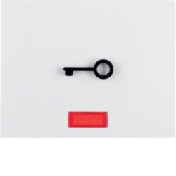 Kolébka s červenou čočkou a hmatným symbolem - klíč, Berker K.1, bílá, lesk