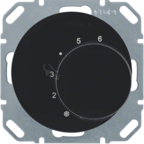 Termostat, pokojový s přepínačem a centrálním dílem, Berker R.1/R.3, černá, lesk