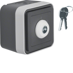 Vypínač žaluziový ovládání klíčem, 3 polohy s potiskem 1-0-2, komplet., IP 55, Berker W.1, sv. šedá, mat
