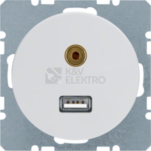 Zásuvka, USB/3,5 mm Audio, Berker R.1/R.3, bílá, lesk