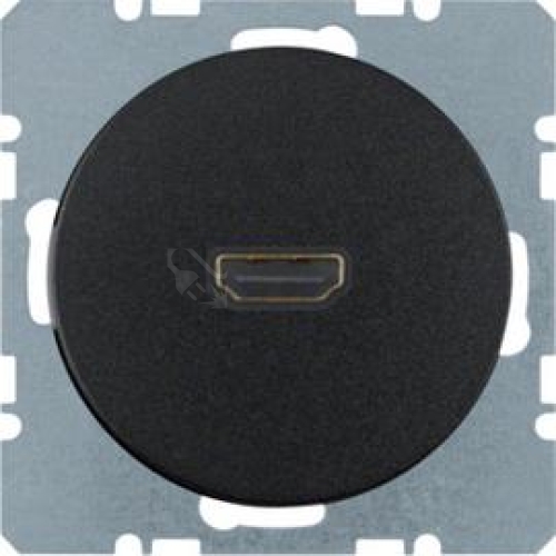 Zásuvka, HDMI, vývod zezadu 90°, Berker R.1/R.3, černá, lesk