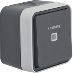 Vypínač řazení 6 s kontrolkou a popisem "Heizung", komplet., IP 55, Berker W.1, sv. šedá, mat