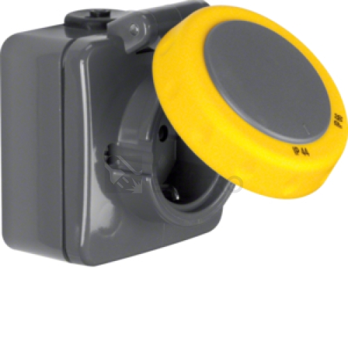 Zásuvka, SCHUKO, s klapkou bajonetového uzamčení, se zvýšenou ochranou proti dotyku IEC 60884-1, 16 A, 250 V~, IP66, ISO-Panzer IP66, tm. šedá/žlutá