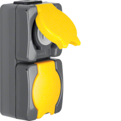 Zásuvka se zemnícím kontaktem, NEMA 5-15 R, 125 V~, "USA/Kanada", šroubovací svorky, ISO-Panzer IP44, tm. šedá/žlutá