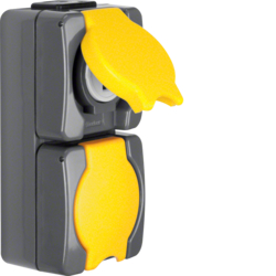 Zásuvka dvojnásobná, se zemnícím kontaktem, NEMA 5-20 R, 125 V~, "USA/Kanada", šroubovací svorky, ISO-Panzer IP44, tm. šedá/žlutá