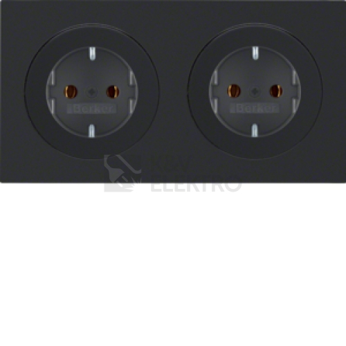 Zásuvka, SCHUKO, 16 A, 250 V ~, dvojnásobná se společným rámečkem, bezšroub. svorky, komplet, Berker R.3, černá, lesk