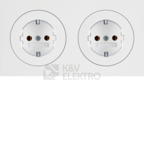 Zásuvka, SCHUKO, 16 A, 250 V ~, dvojnásobná se společným rámečkem, bezšroub. svorky, komplet, Berker R.3, bílá, lesk