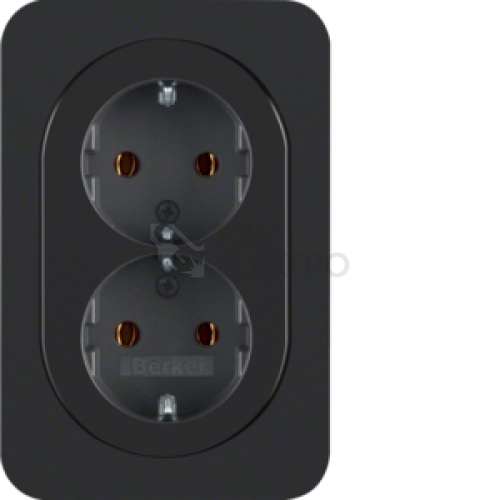 Dvojzásuvka, SCHUKO s rámečkem, 16 A, 250 V~, bezšroub. svorky, Berker R.1, černá, lesk