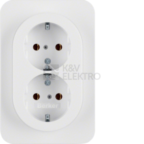Dvojzásuvka, SCHUKO s rámečkem, 16 A, 250 V~, bezšroub. svorky, Berker R.1, bílá, lesk
