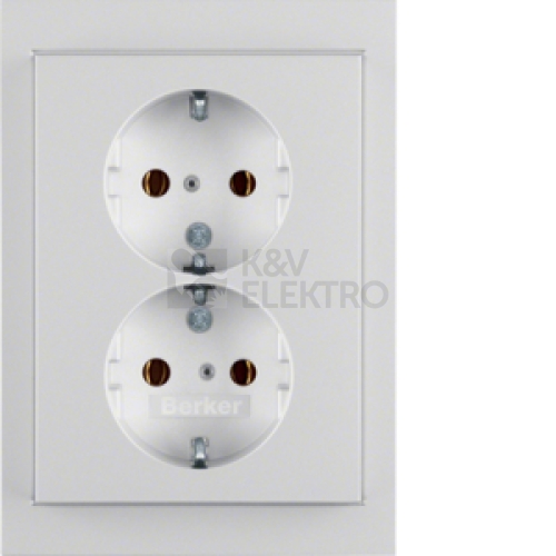Dvojzásuvka, SCHUKO s rámečkem, 16 A, 250 V~, bezšroub. svorky, Berker K.5, Alu, lak.