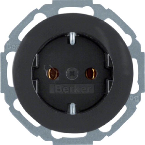 Zásuvka, SCHUKO, 16 A, 250 V ~ se zvýšenou ochranou kontaktů IEC 60884-1, bezšroub. svorky, Serie R.classic, černá, lesk