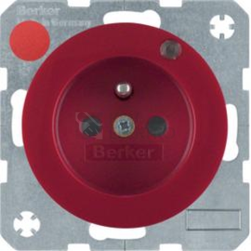 Zásuvka se zemnicím kolíkem a LED kontrolkou, 16 A, 250 V ~, šroubovací svorky, Berker R.1/R.3, červená, lesk