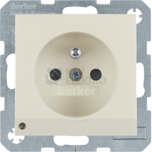Zásuvka se zemnicím kolíkem a LED orientační kontrolkou, 16 A, 250 V ~, šroubovací svorky, Berker S.1, krémová, lesk