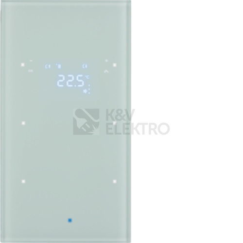 Senzor, skleněný, 2-násobný s pokojovým regulátorem teploty, Berker TS Sensor, sklo, bílá