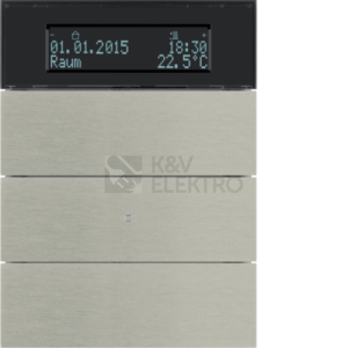 Senzor, tlačítkový, 3-násobné s pokoj. termostatem a displejem, B.IQ, ušlecht. nerez. ocel