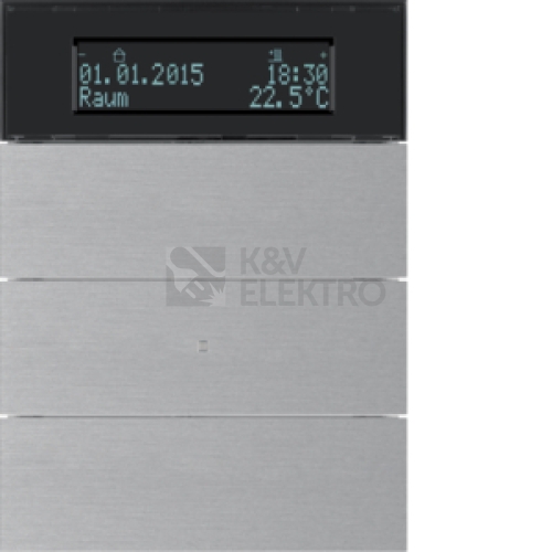 Senzor, tlačítkový, 3-násobné s pokoj. termostatem a displejem, B.IQ, Alu