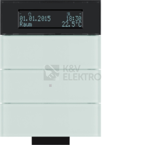Senzor, tlačítkový IR, 3-násobné s pokoj. termostatem a displejem, B.IQ, sklo, bílá
