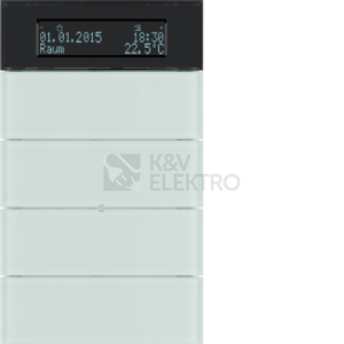 Senzor, tlačítkový, 4-násobné s pokoj. termostatem a displejem, B.IQ, sklo, bílá