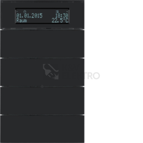 Senzor, tlačítkový, 4-násobné s pokoj. termostatem a displejem, B.IQ, sklo, černá